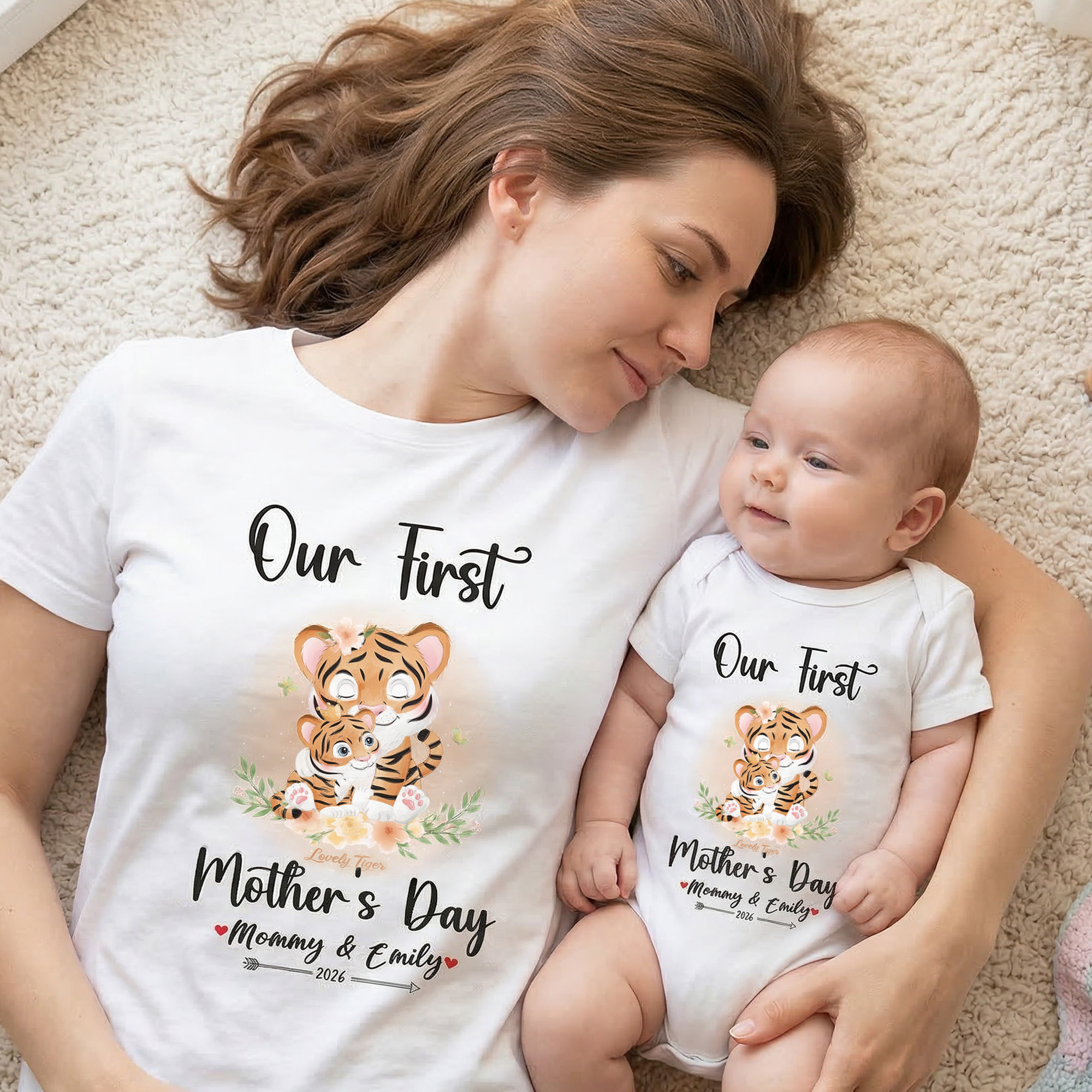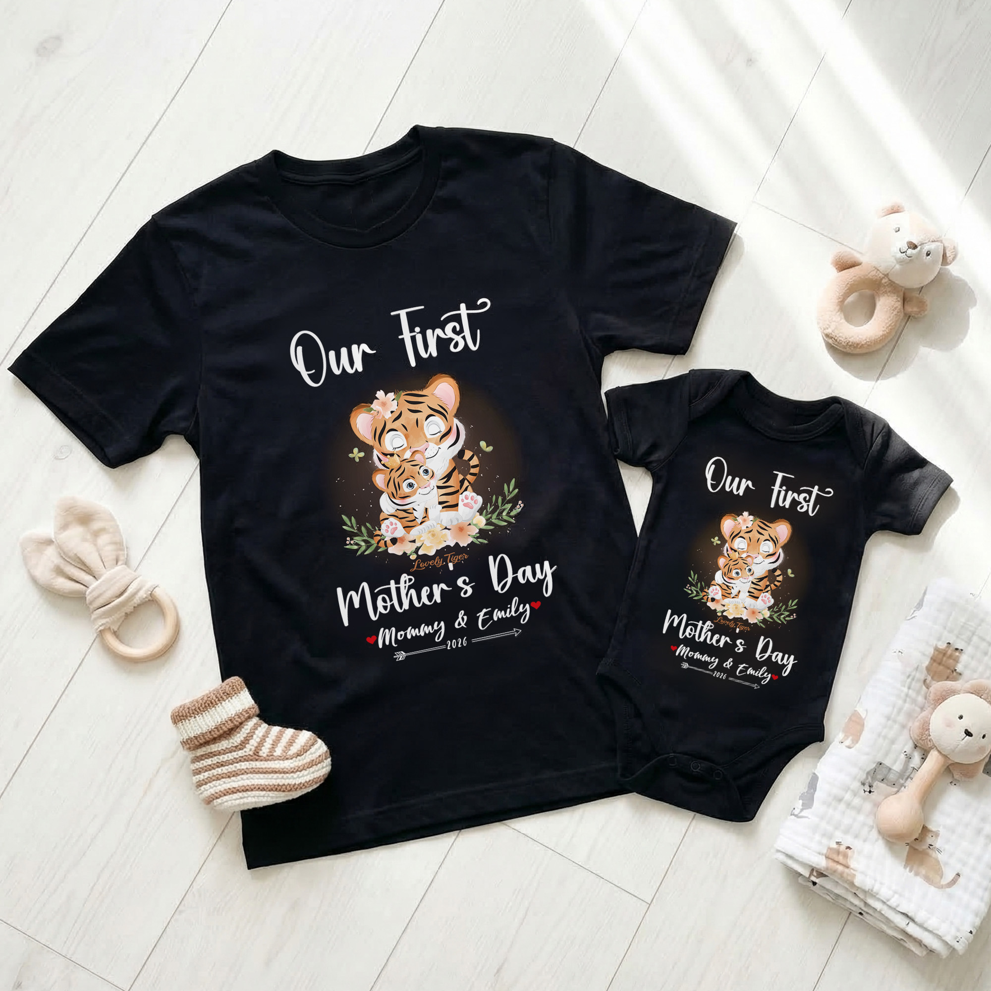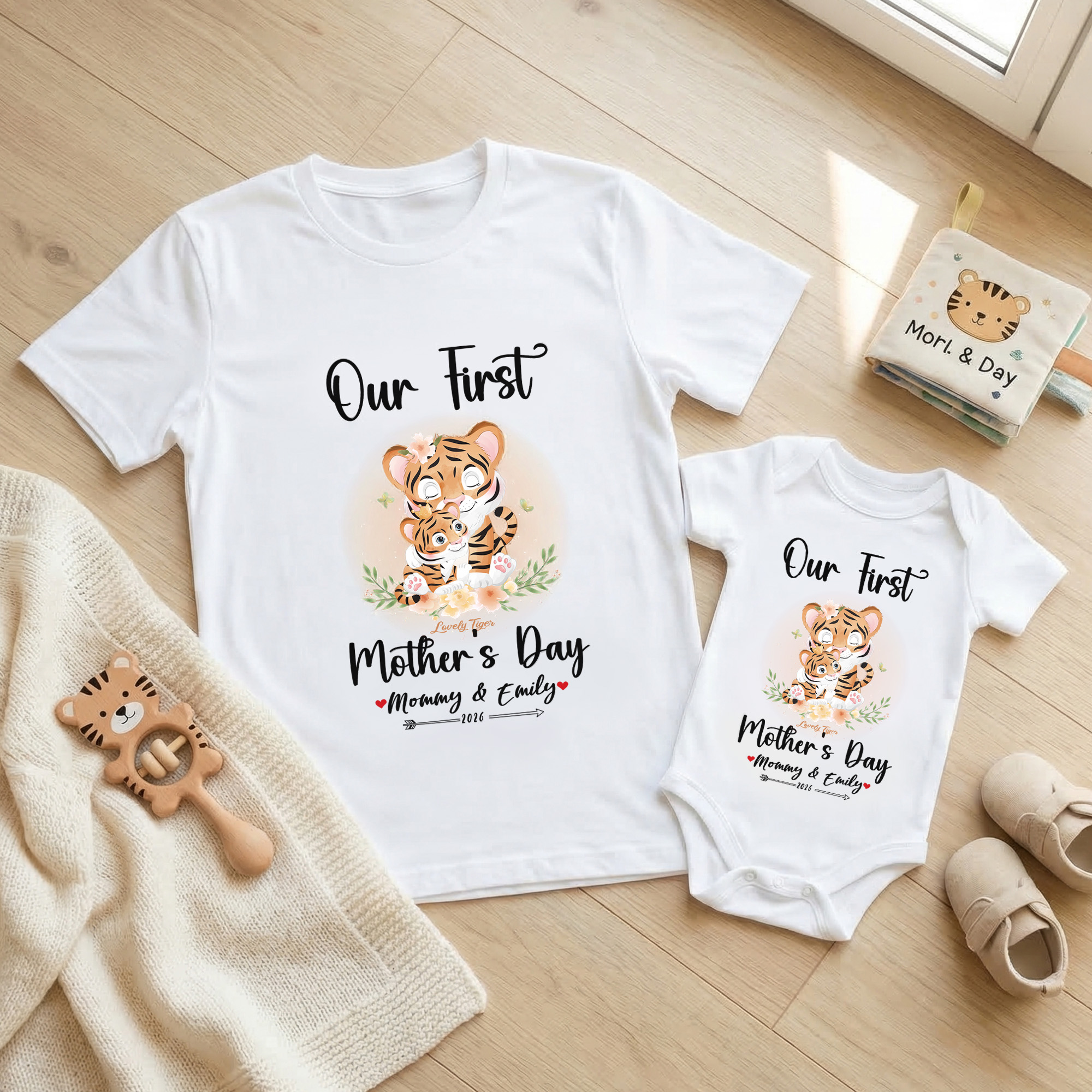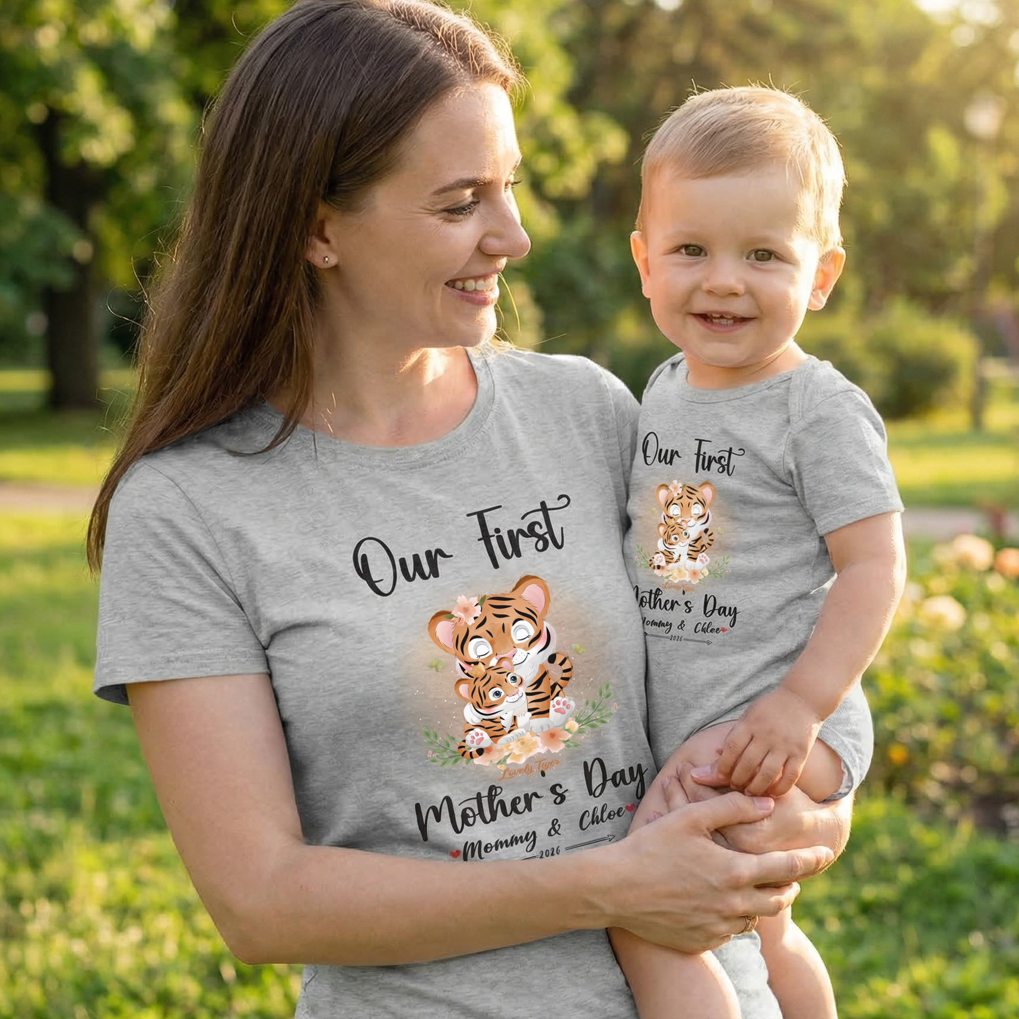 | Style | Custom Cute Tiger Our First Mother's Day Mom & Baby Matching Set with Name Year |