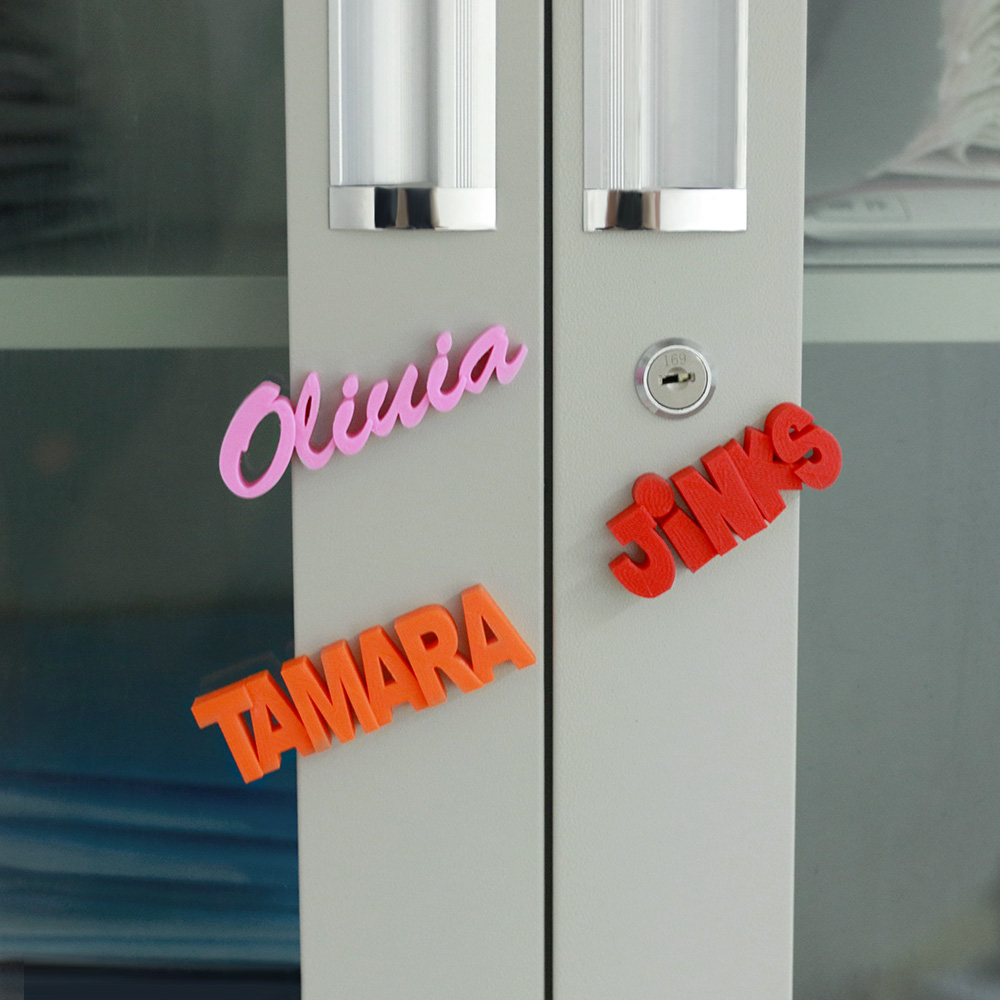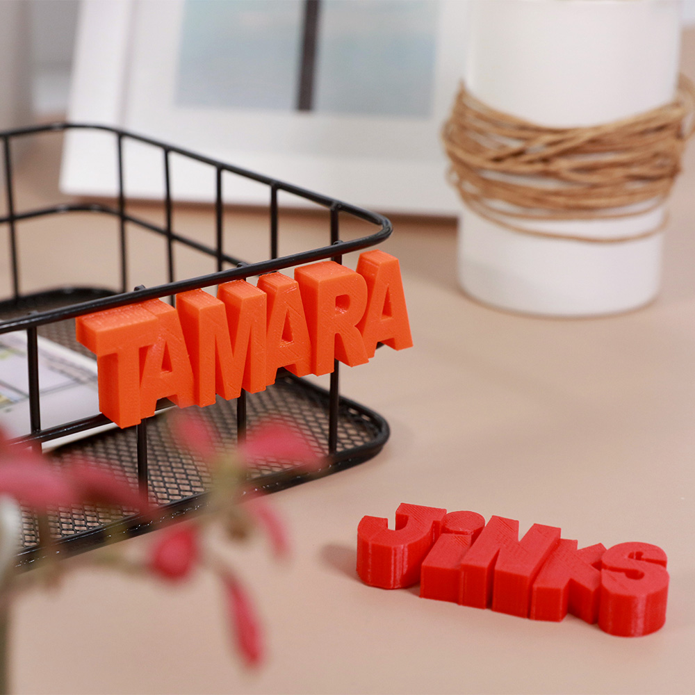 Use the most advanced 3D printing technology to print out your favorite text content or name, and paste it on the refrigerator to remind your loved ones to eat on time; paste it on the cabinet door to remind others that this is your private space ; Paste it on the shelf or pet cage to have the function of distinguishing things. The whole product is made of PLA's safe materials and can be used with confidence.